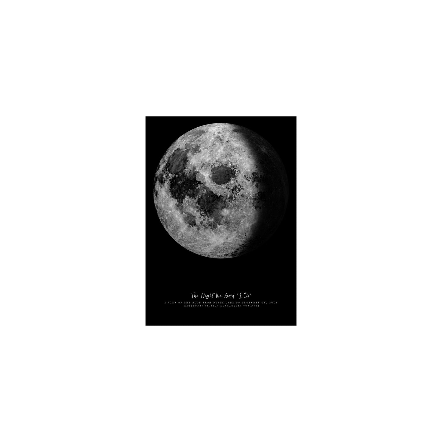 Our Personalized Moon Phase Print is a replica of the moon on your custom date from your custom location. A thoughtful gift for any occasion or event that you want to celebrate and remember over and over again.
