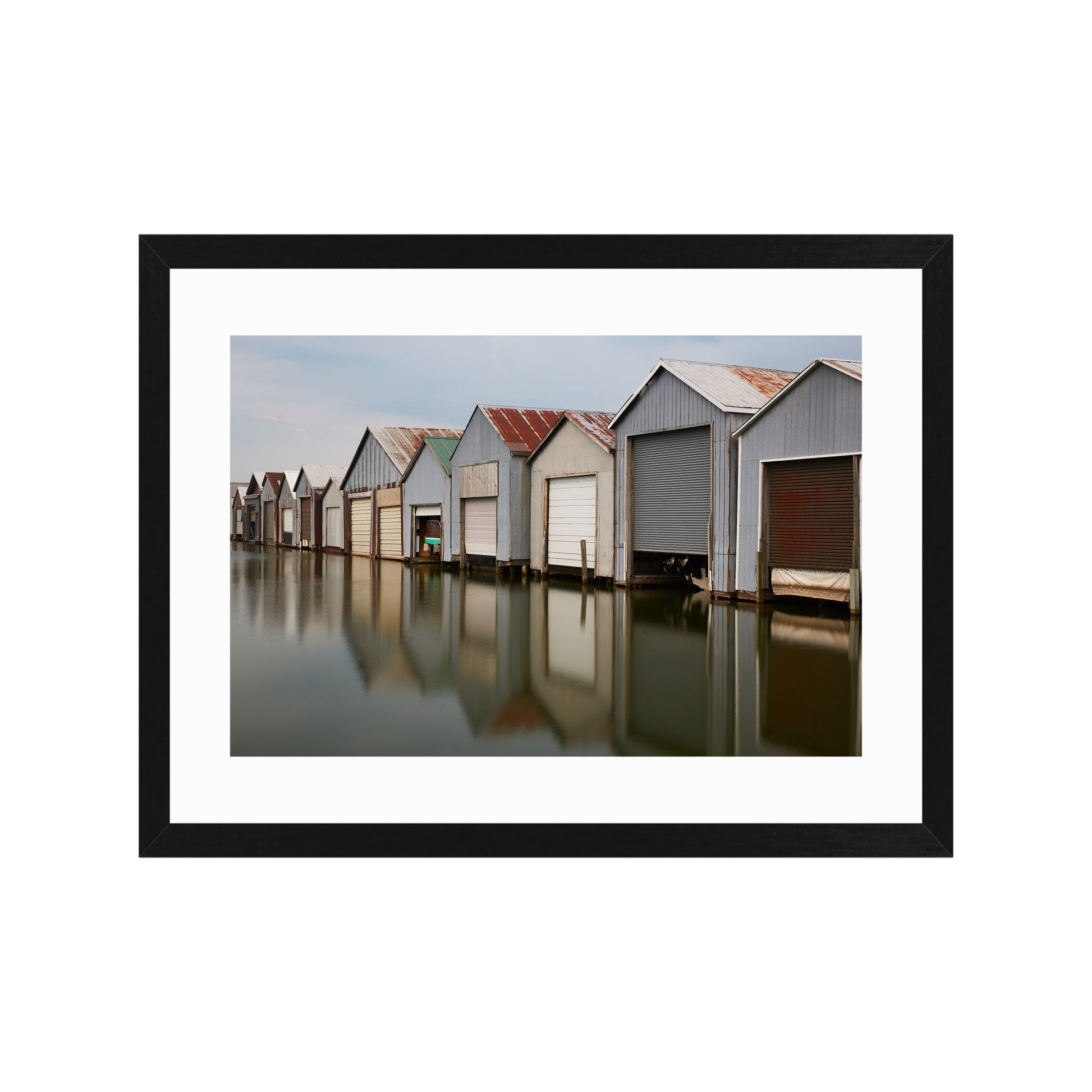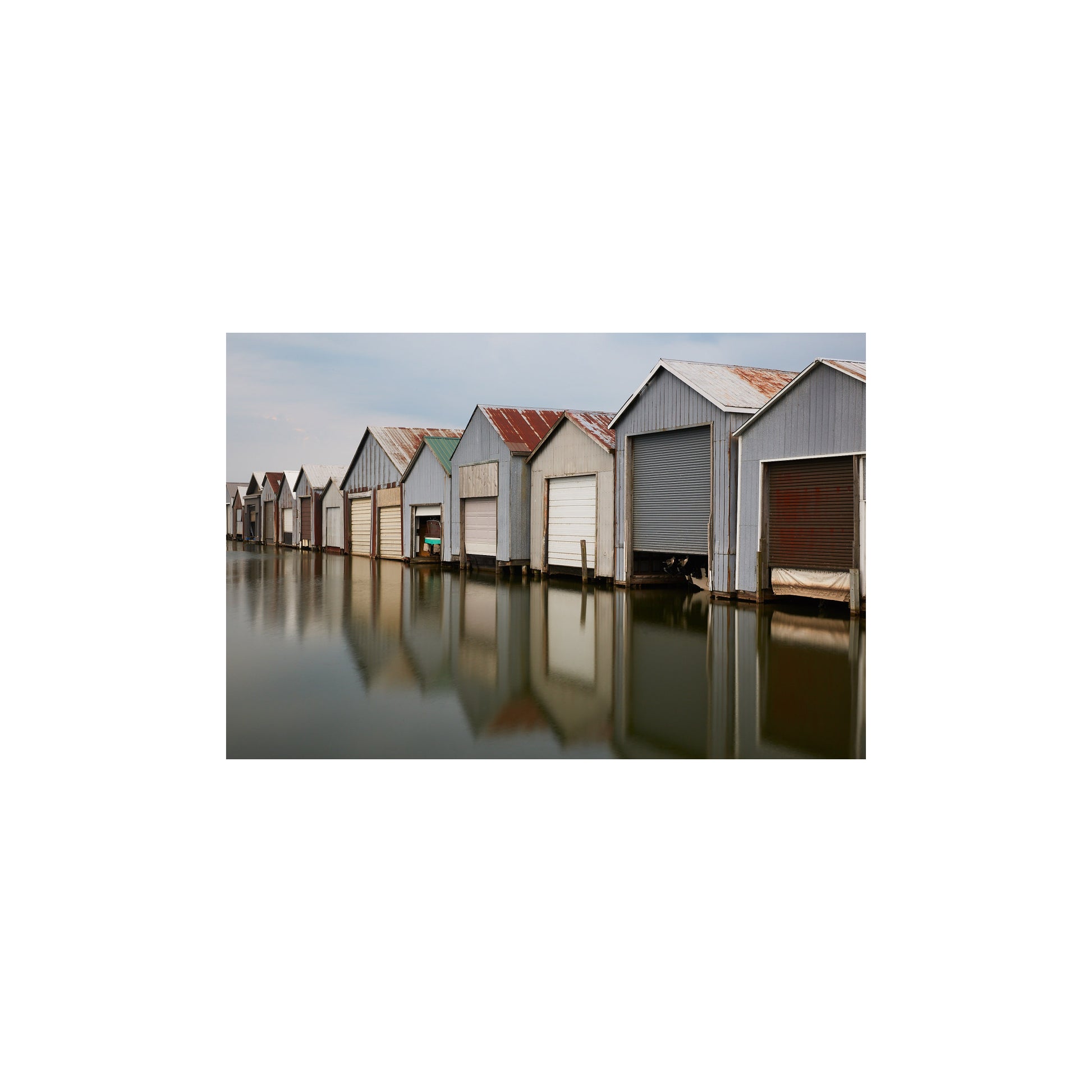 Presenting "Port Rowan Boat Houses," a limited edition archival giclée print by visual artist Paul Lambert.
